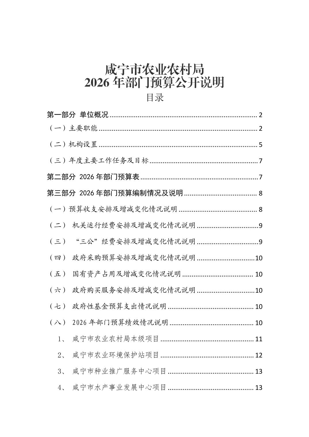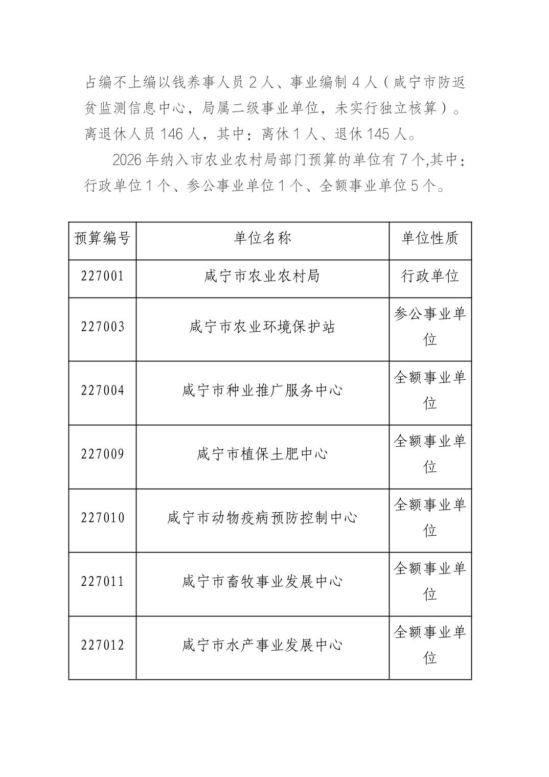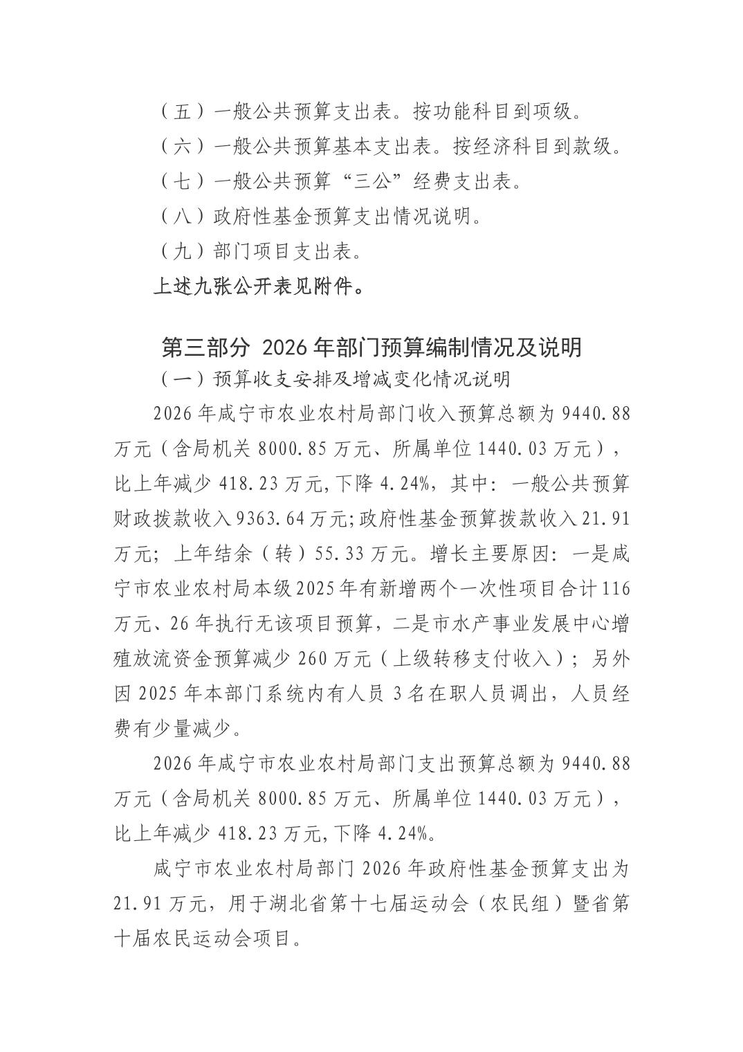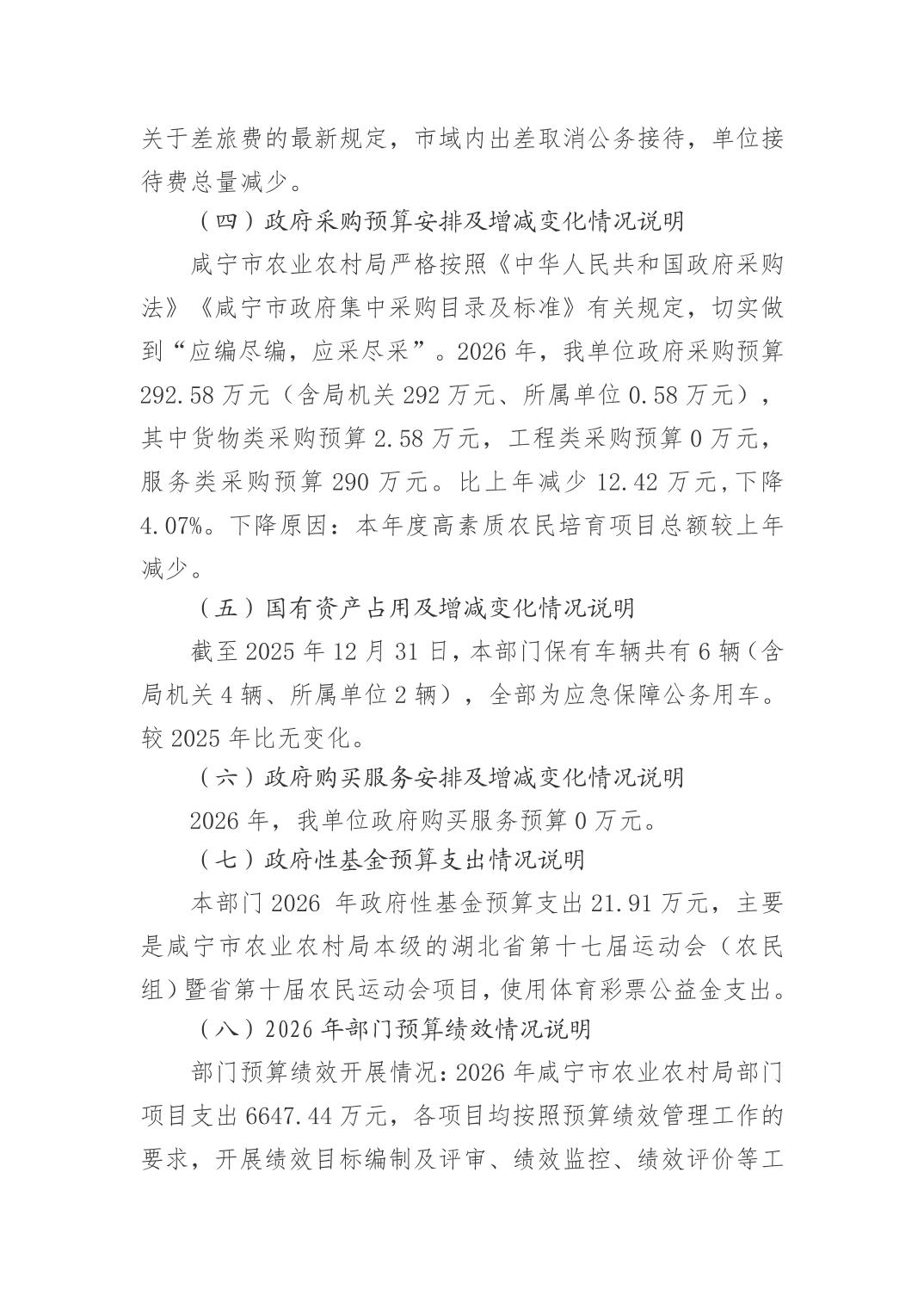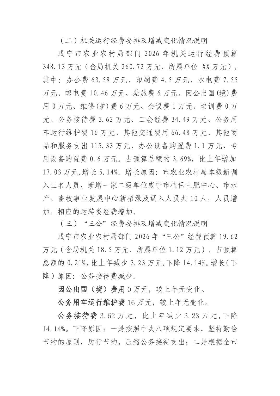 名 称: 咸宁市农业农村局2026年预算公开情况说明 发布日期: 2026年03月05日